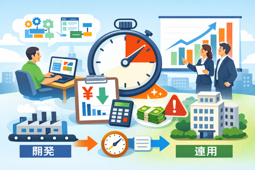 本記事では、まずローコード開発 見積もりが早い構造的な理由を整理し、そのうえで開発スピード 費用 相関(開発速度とコストの関係)をどう捉えるべきかを解説します。単に「早くて安い」だけを期待するのではなく、「どの条件ならスピードと費用が素直に連動するのか」「どこからがローコード 高くつく条件なのか」という境界線を、経営層や事業責任者の視点で言語化していきます。