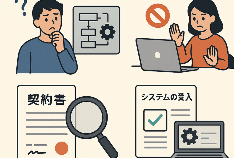 「それもできるよね?」が毎週出てくる/担当者が都度変わる/決定事項が議事録に残らない/見積もりの前提が口頭だけ──この状態は、システム開発 費用が膨らみやすい危険信号です。早めに見積もりの前提を文章化し、変更の扱いを決めるとコスト削減になります。