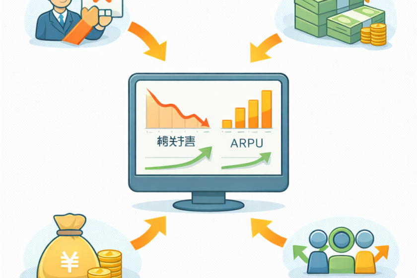 ARPUも同様で、課金ユーザーのみを分母にするのか、無料ユーザーも含めるのかで値が変わります。無料ユーザーを含めると“下がったように見える”だけで、課金者の単価は改善しているケースもあります。LTVはさらに注意が必要で、単純LTV(ARPU÷解約率)だけで語ると、粗利やサポートコストを無視してしまいます。実務では、粗利ARPUで計算するLTVや、コホートで予測するLTVを併用し、意思決定の目的に合わせて使い分けます。