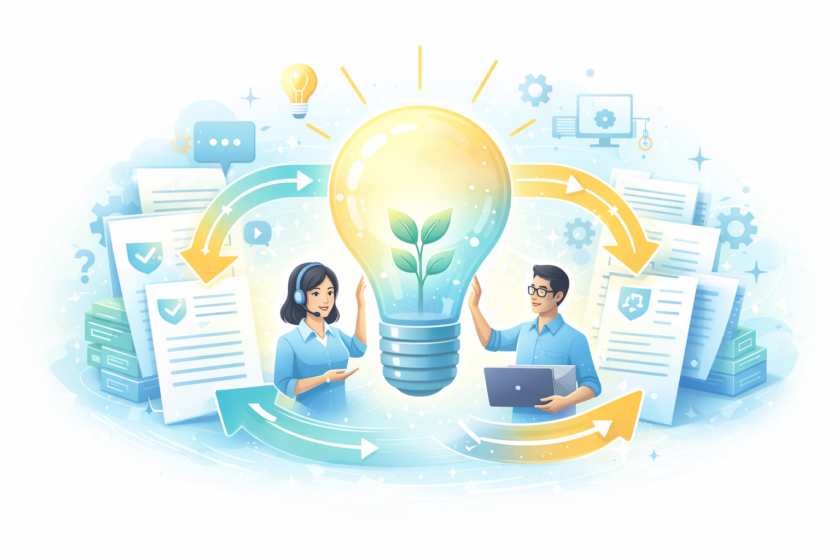 “生きたナレッジ”とは、単なる一問一答の集まりではなく、状況・前提・判断基準まで含めて整理され、継続的に更新される社内知識です。従来のテンプレ回答が「Q:◯◯/A:△△」という静的なFAQに近いのに対し、“生きたナレッジ”は「どのような状況でそのQが発生しやすいか」「どの条件ならこのAを使い、どの条件なら別のAに切り替えるか」「適用時のリスクや例外事項は何か」まで構造化されている点が決定的に異なります。これを支えるのが、日々の問い合わせと対応を起点にしたナレッジ運用です。