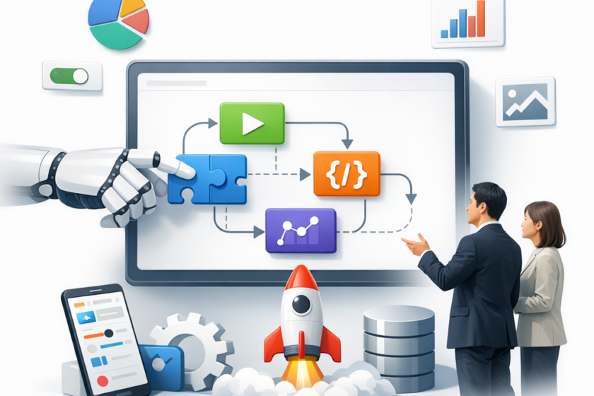 - ローコード:設定中心だが必要に応じてコードで拡張できる。自由度は上がるが、設計・品質管理も必要。