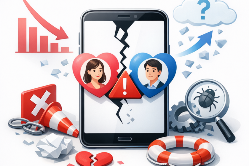 ここでの落とし穴は、単に広告費の問題ではなく、“初期密度(同じ条件の相手が見つかる確率)”を作る設計がないことです。たとえば全国対応で開始しても、地方や条件が細かいユーザーほど「候補がいない」体験になり離脱します。するとレビューが悪化し、広告効率も落ちてさらに集客が難しくなります。