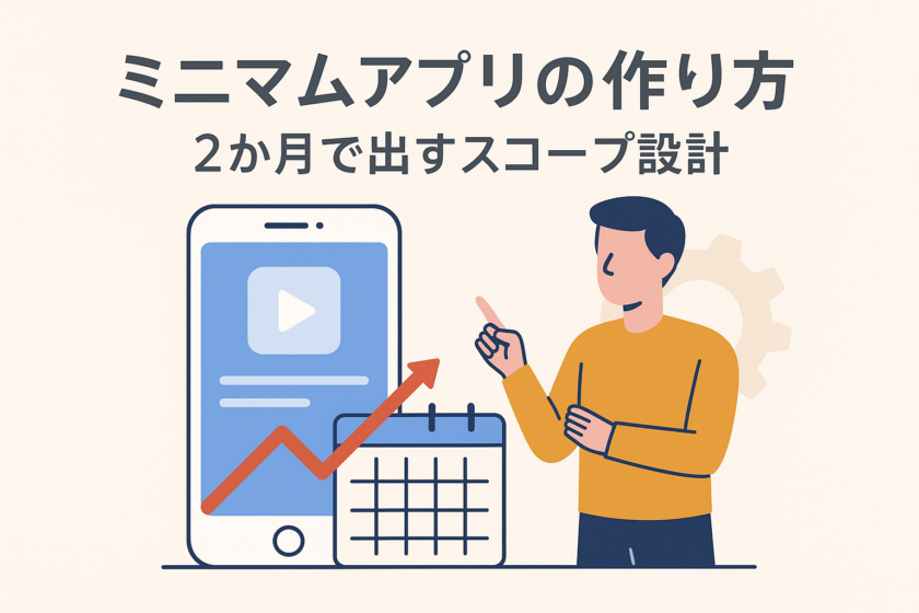ミニマムアプリを2か月でリリースするための考え方と具体的なスコープ設計・進行方法を解説。目的設定から開発スケジュール、失敗パターンと外部パートナー活用まで、初めてのアプリ開発でも迷わず進められる実務的なガイドです。