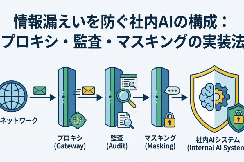 本記事では、社内AIを安全に活用するための構成として、「プロキシ」「監査ログ」「データマスキング」を組み合わせたアーキテクチャの考え方を紹介しました。社員のリテラシーだけに頼るのではなく、構成そのものを安全側に振ることで、情報漏えいリスクを現実的なレベルまで下げることができます。
