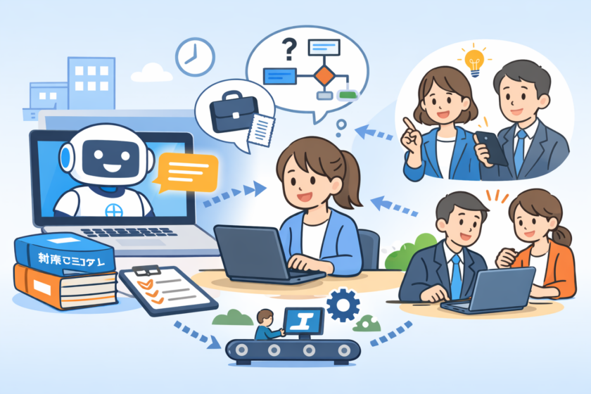「よく質問が出るテーマ」から絞り込み、小さく始めて徐々に範囲を広げる考え方が、現実的な新人教育 自動化の第一歩です。