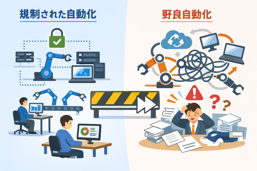 経費精算 自動化の現場でしばしば問題になるのが、現場メンバーが独自に作ったマクロやRPAフロー、スクリプトが無秩序に増えていく「野良自動化」です。個人のPCにだけ入っているExcelマクロ、個人アカウントにひもづいたノーコードフロー、担当者が退職した途端に動かなくなるBot……。こうした野良ロボットは、一時的には領収書 保存 自動化や経費処理 自動化の助けになっても、長期的にはセキュリティリスクや運用リスクを増大させます。そこで重要になるのがRPA ガバナンスです。