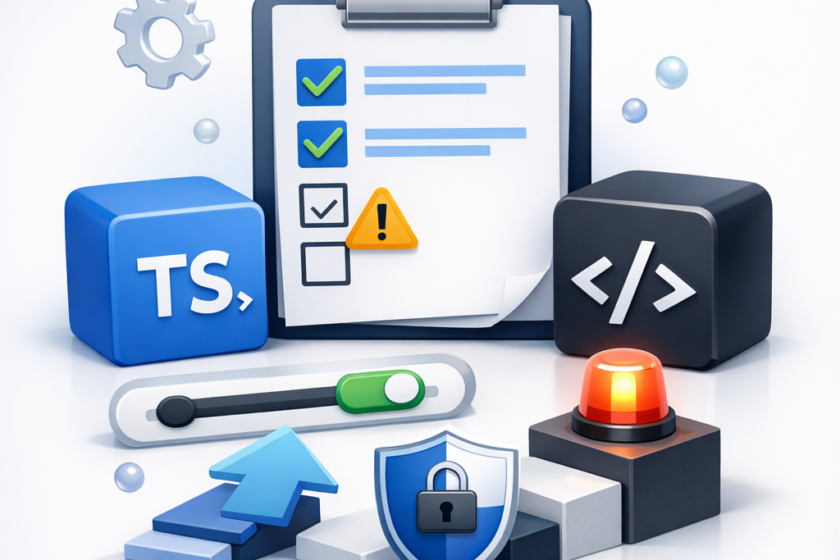 一定期間運用してエラーが落ち着いたら、strictNullChecks、noUncheckedIndexedAccessを順にON。最後にstrict=trueへ、という流れです。重要なのは、“ONにしたら戻さない”運用ルールにすることです。戻すと、改善が積み上がりません。