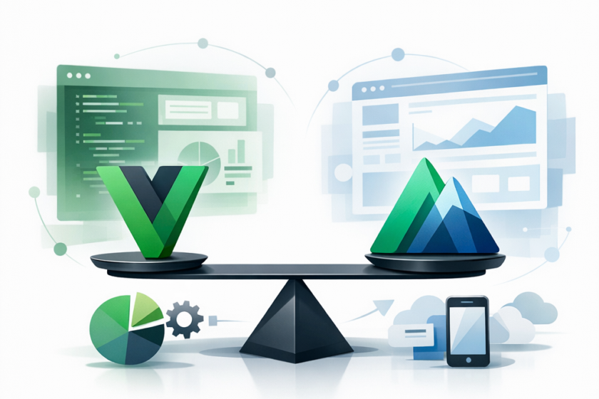 Webシステムの刷新や新規サービス立ち上げを検討していると、「Vue.jsとNuxtって何が違うの?どっちを選べばいいの?」という疑問が出てきます。結論から言うと、Vue.js(Vue)は画面を作るための“部品の作り方”に近い枠組みで、NuxtはVueを使って“アプリ全体を組み立てるための型(テンプレート)”です。つまり、同じ土俵で比較するというより、Vue.jsを土台に、Nuxtでアプリ構成を整えるイメージが実態に近いです。